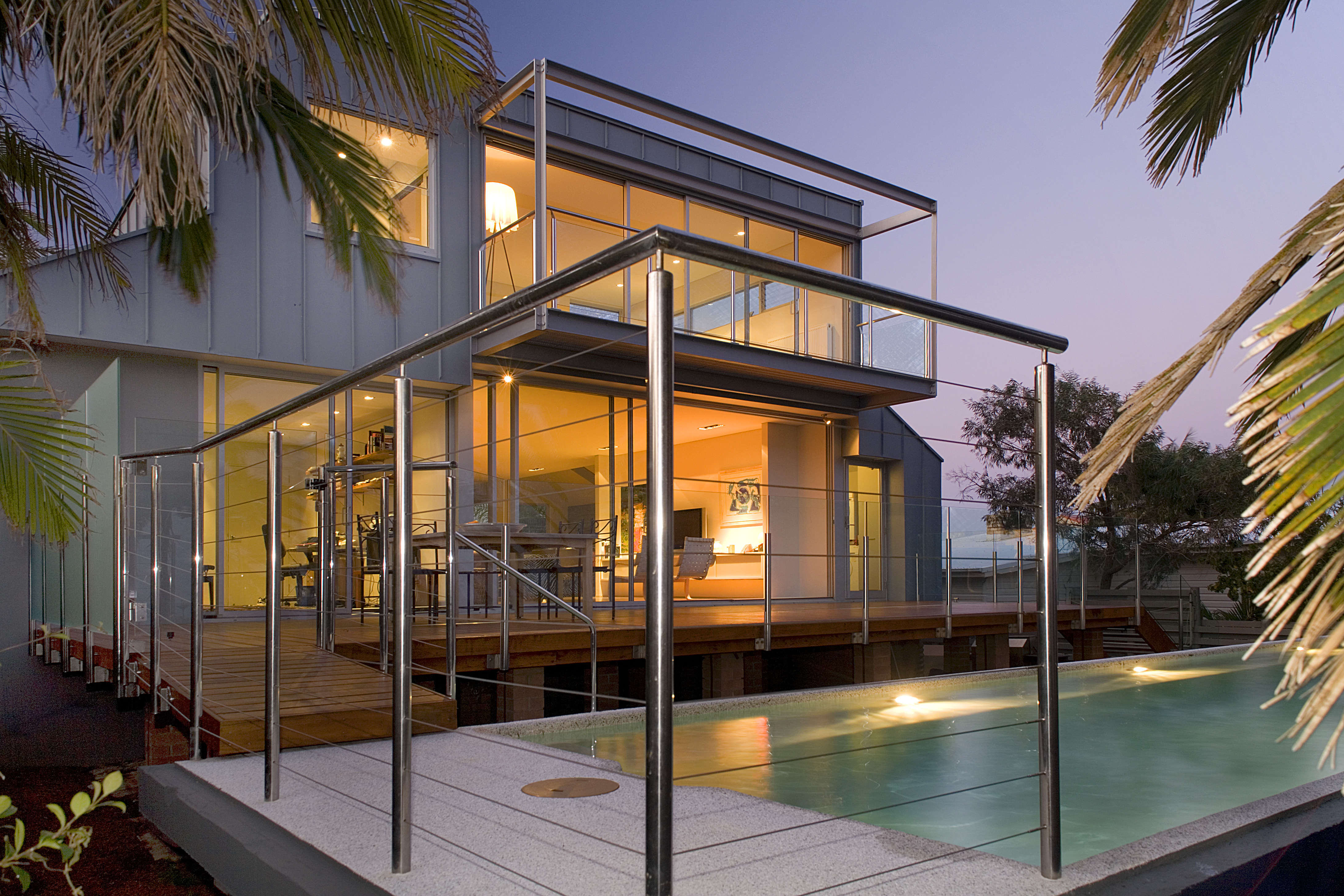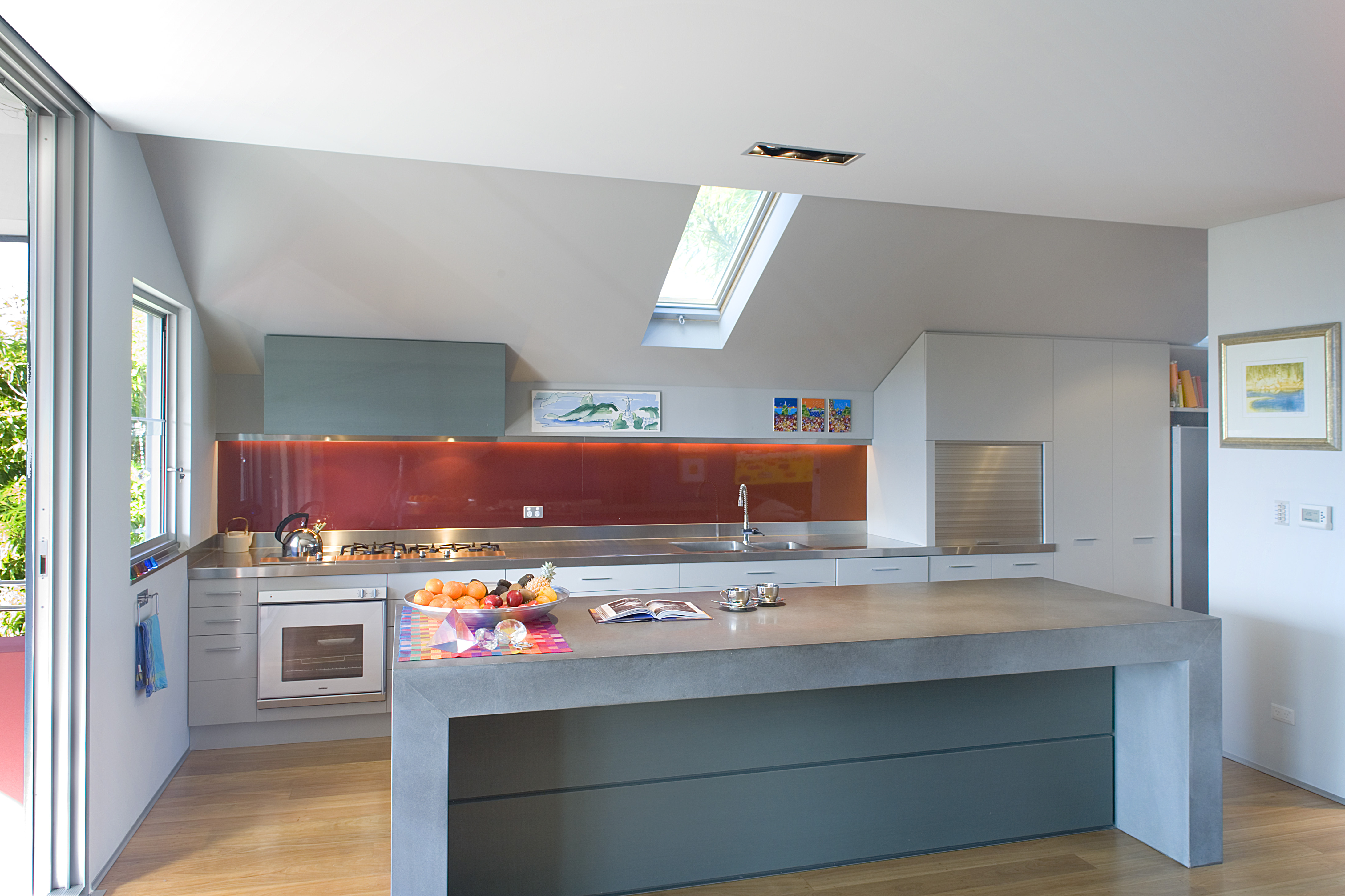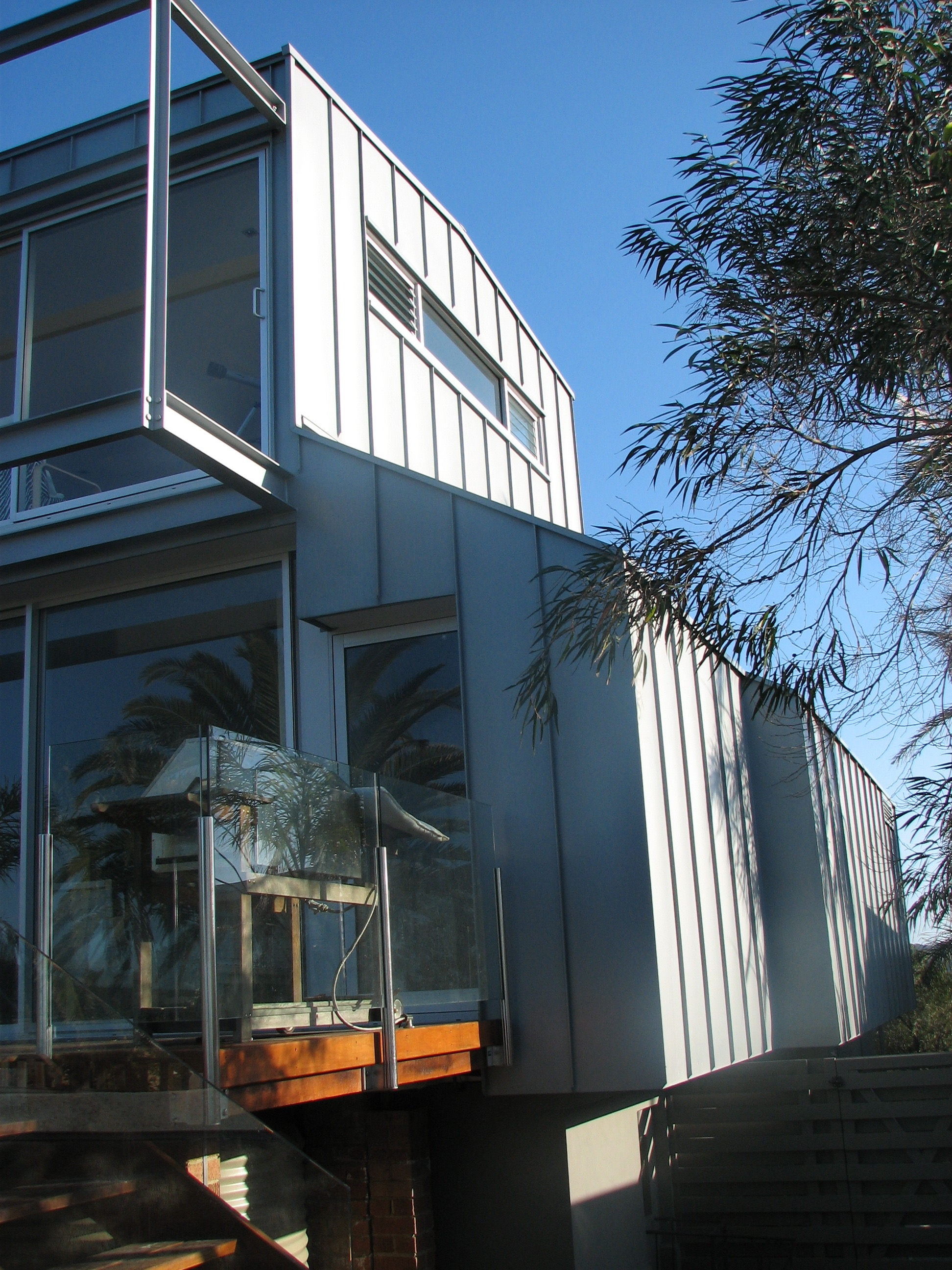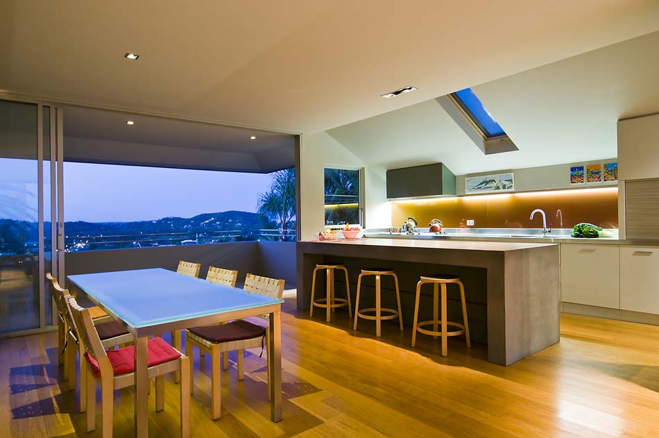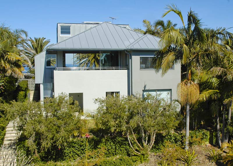 Situated on a ridge between Avalon and Bilgola Beach, the original red brick and tile cottage has been transformed into a spacious contemporary residence that takes advantage of solar aspects and spectacular views north and south along the coast.