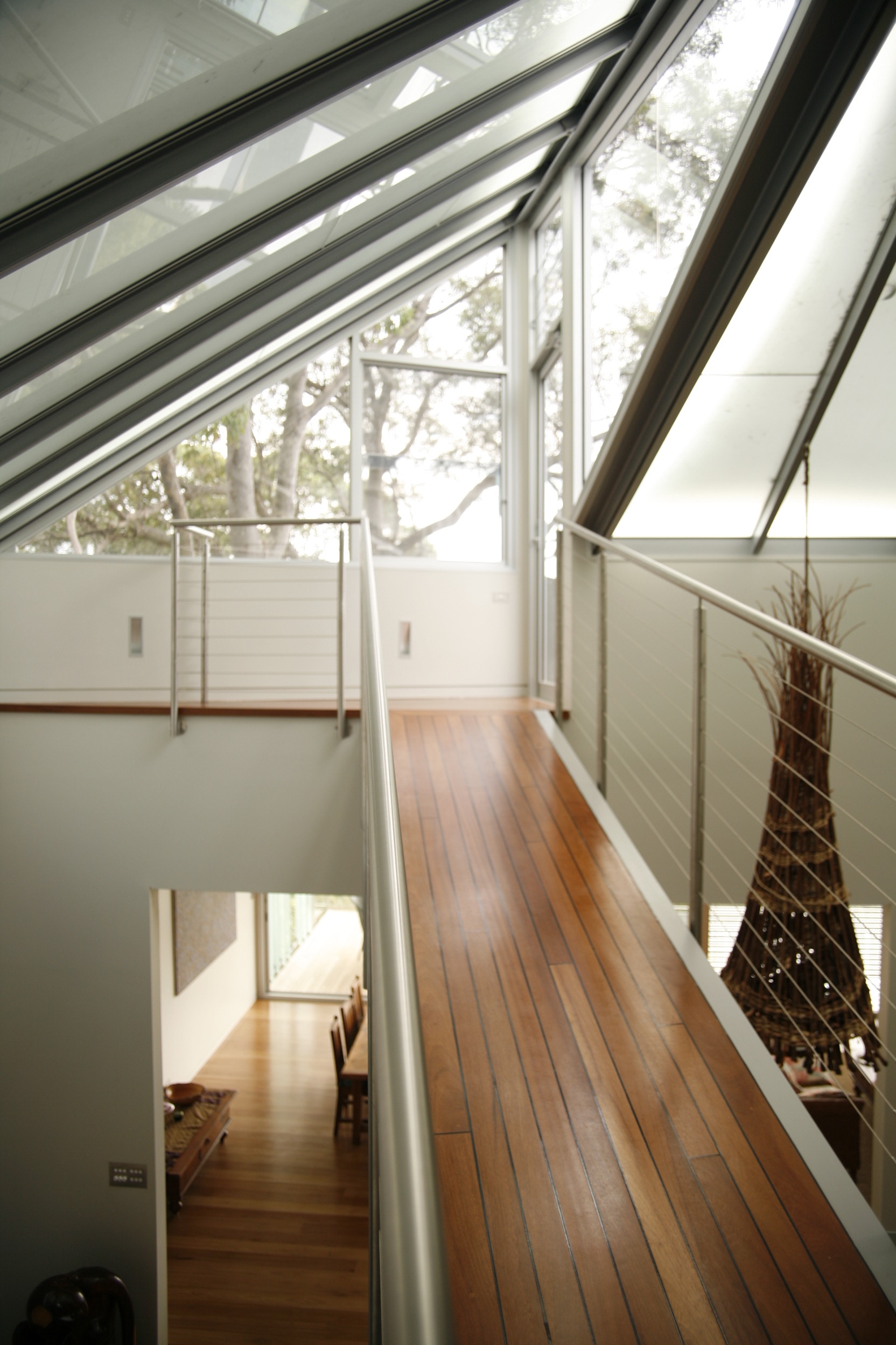 Keen to remain faithful to the essence of the original design, the new brief called for an injection of flair and a contemporary edge whilst producing a high quality, low maintenance building. The house is conceived as a series of pavilions with interconnecting decks, taking advantage of spectacular views over Palm Beach and beyond. A new internal ramp leads through a soaring glazed atrium space to the upper deck which is very private and also accessible from the master suite.