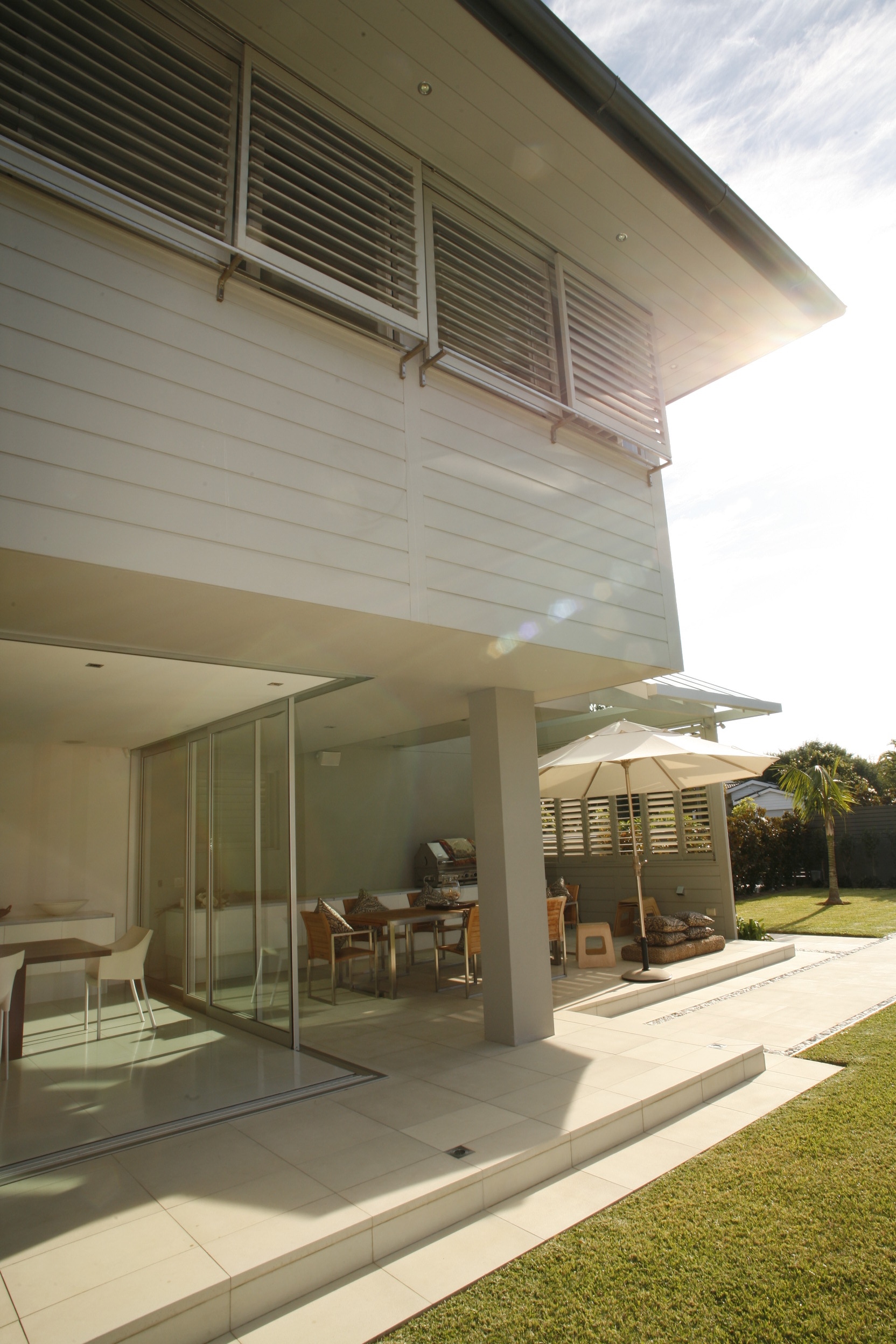 The floating eaves and sliding timber shutters, a mixture of stone, render and timber boarding are all familiar in the Palm Beach vernacular architecture and were, in this case, employed to achieve the desired scale and integration with its surroundings. This can only be enhanced with time and a gradually maturing landscape.